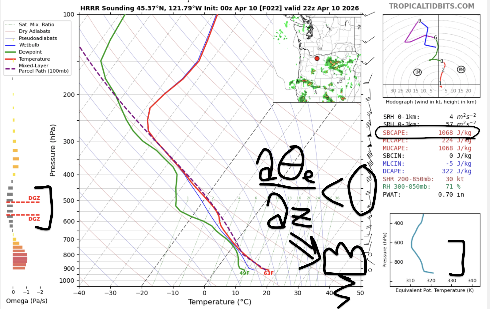 2. My heiroglyphics dθe/dz < 0 essentially tell us the same thing as SBCAPE. dθe is the