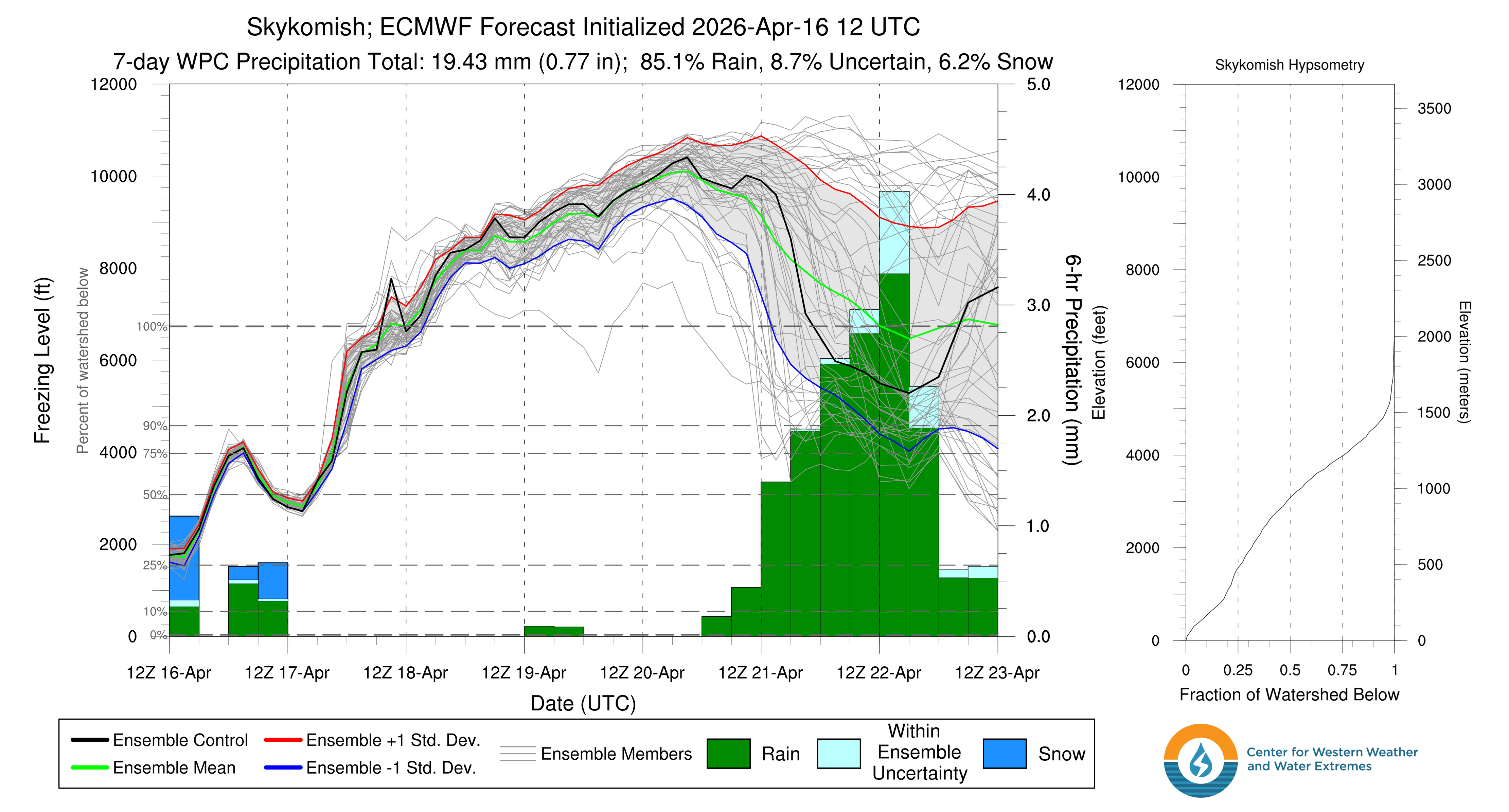 and moderate freezing levels in the 3500-4000 ft range. The cold front passed late Tuesday night accompanied by an increase in precipitation rates